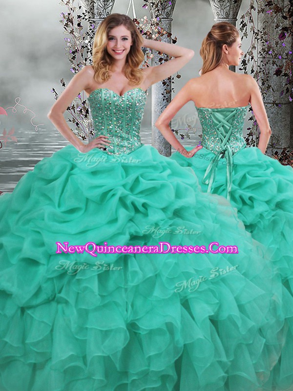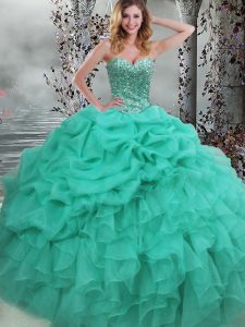Adorable Green Sweetheart Neckline Beading and Ruffles Sweet 16 Quinceanera Dress Sleeveless Lace Up