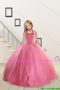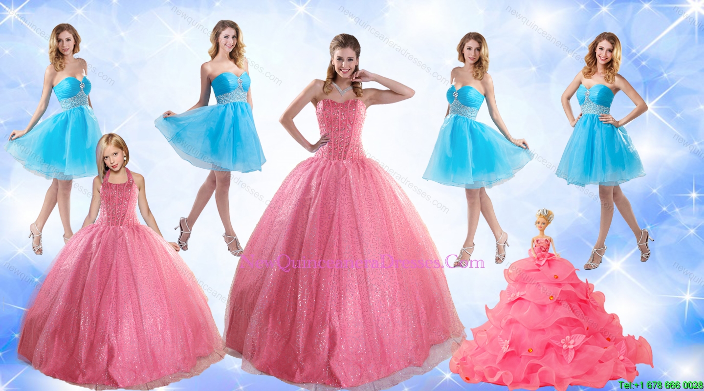 Cute Ball Gone Quinceanera Dress and Beading Baby Blue Dama Dresses and Rose Pink Halter Top Little Girl Dress
