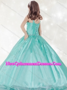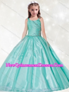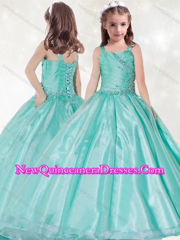 Cute Straps Big Puffy Mint Little Girl Pageant Dress with Beading and Ruching