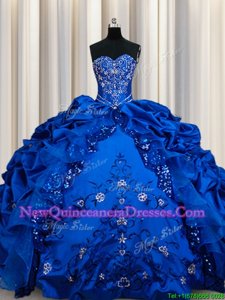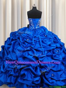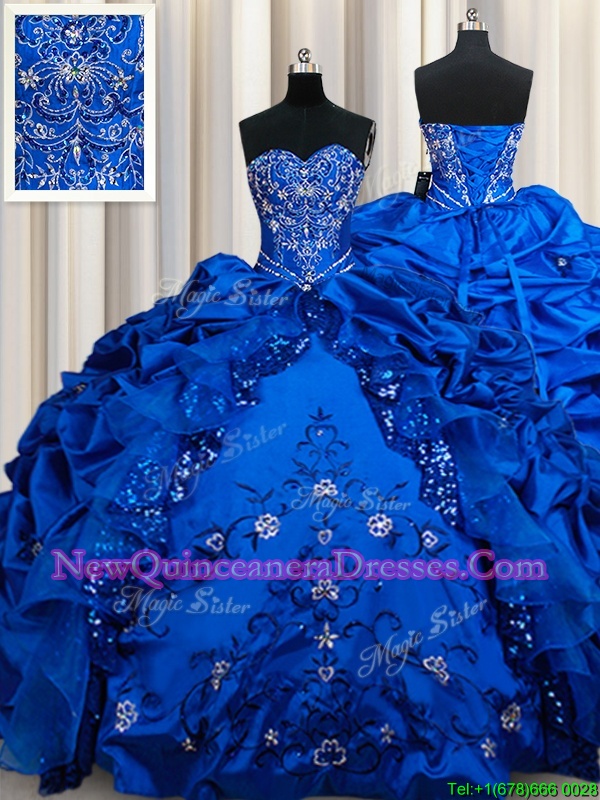 Dazzling Sequins Pick Ups Floor Length Ball Gowns Sleeveless Royal Blue Quinceanera Dresses Lace Up