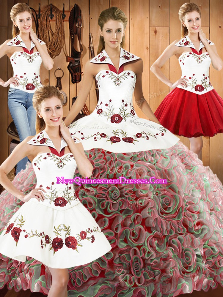 Designer Multi-color Sleeveless Sweep Train Embroidery Sweet 16 Dresses