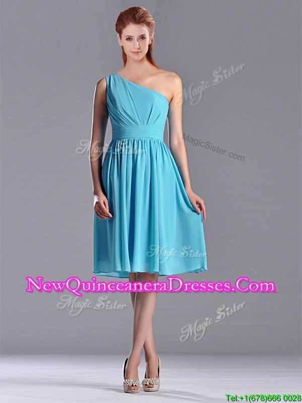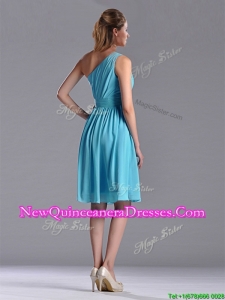 Discount Chiffon Baby Blue Knee Length Dama Dress with One Shoulder