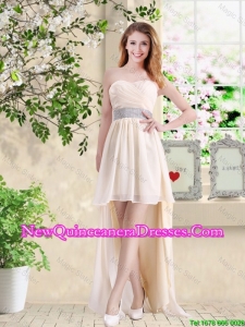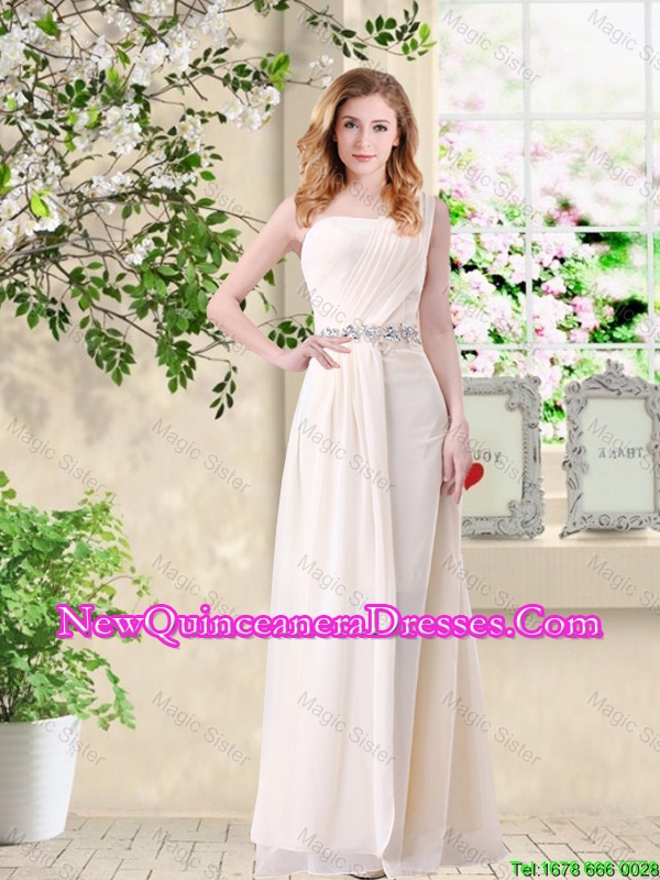 Discount Empire One Shoulder Champagne Dama Dresses with Belt