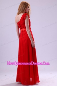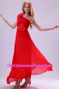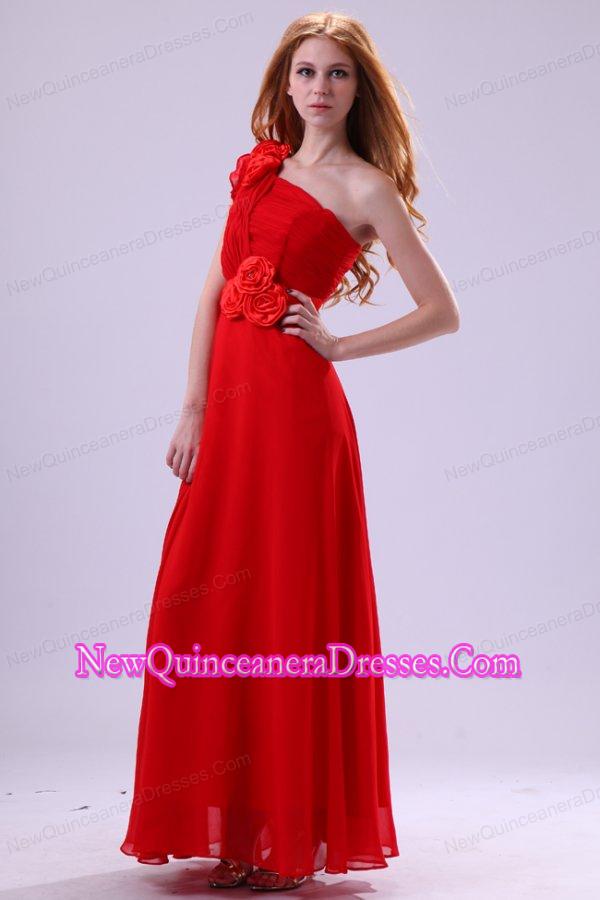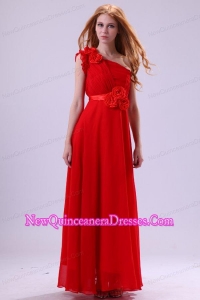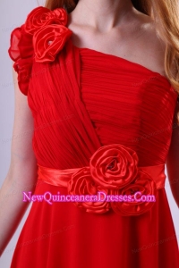 Discount Empire One Shoulder Red Ruching Chiffon Dama Dresses