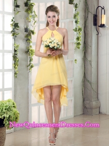 New Fashion Halter Top Asymmetrical Dama Dresses