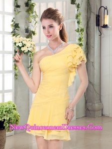 Lovely Inexpensive One Shoulder Dama Dresses with Scarf