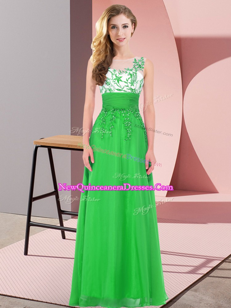 Discount Floor Length Green Dama Dress for Quinceanera Scoop Sleeveless Backless