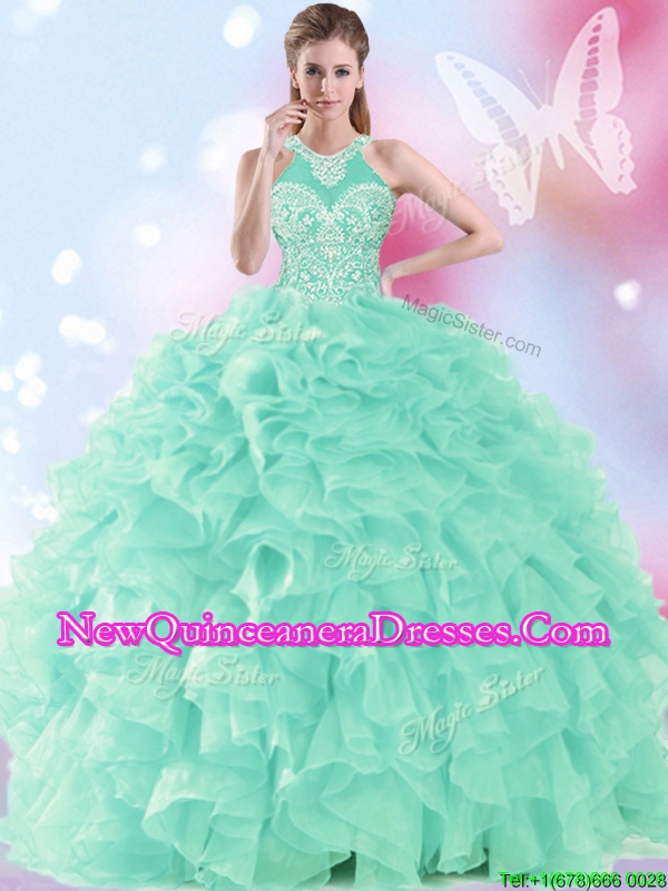 2017 Beautiful High Neck Ruffled and Beaded Sweet 16 Dress in Organza