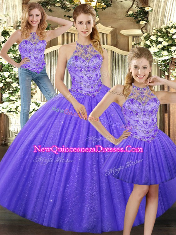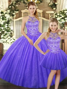 Discount Halter Top Sleeveless Lace Up Sweet 16 Dresses Lavender Tulle