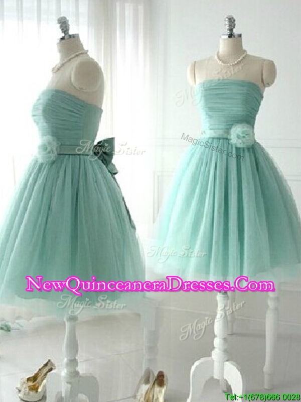 , Discount Handcrafted Flower Short Damas Dress in Apple Green