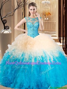 Discount Scoop Sleeveless Vestidos de Quinceanera Floor Length Beading Multi-color Tulle
