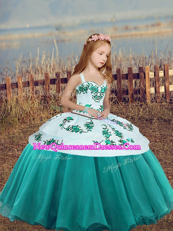 Dramatic Teal Lace Up Kids Formal Wear Embroidery Sleeveless Floor Length