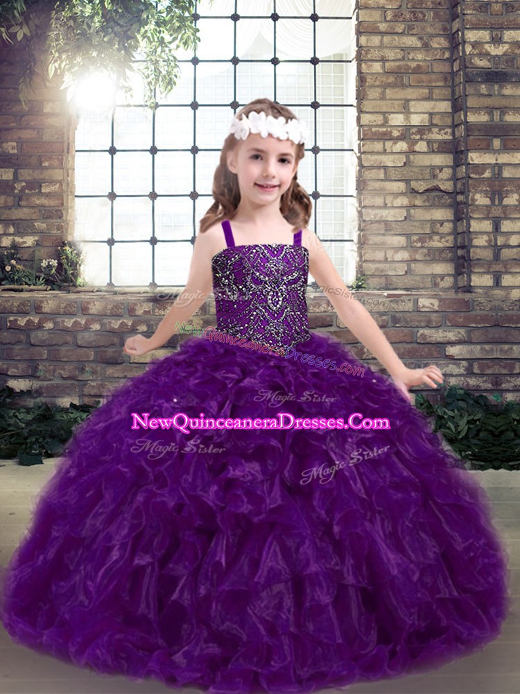 Eggplant Purple Sleeveless Organza Lace Up Child Pageant Dress for Party and Wedding Party