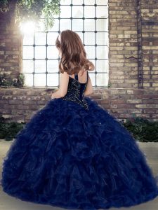 Tulle Straps Sleeveless Lace Up Appliques Little Girl Pageant Gowns in Blue