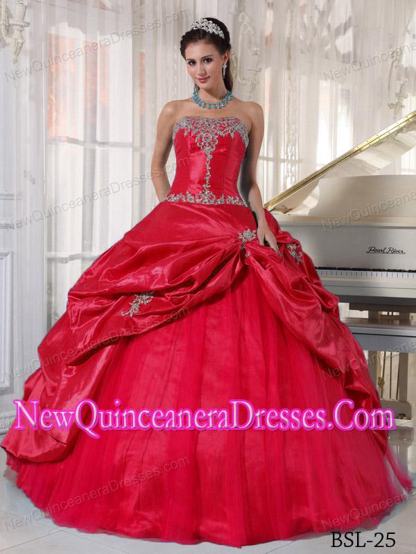 Elegant Ball Gown Strapless Appliques Quinceanera Dress in Red