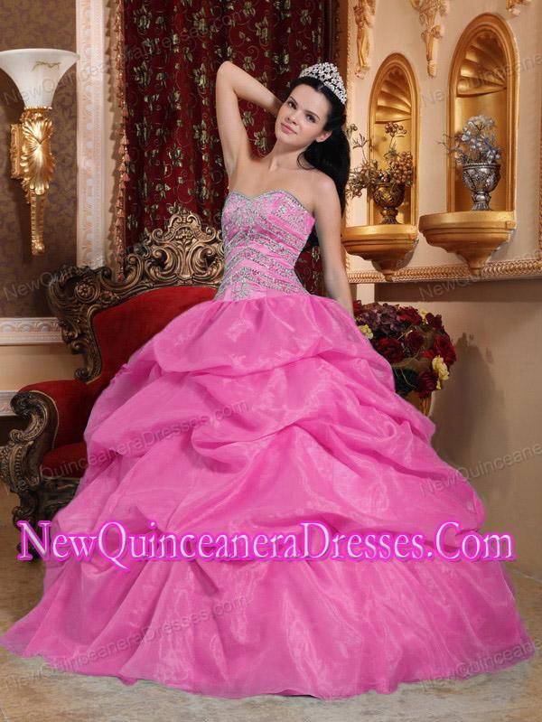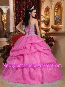 Elegant Ball Gown Sweetheart Organza Beading Quinceanera Dress in Rose Pink