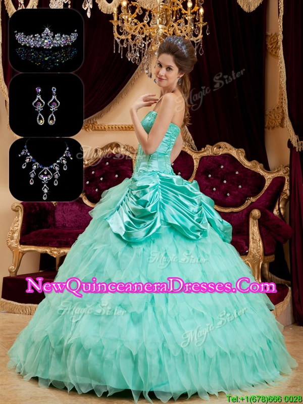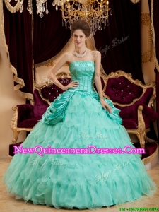Elegant Luxurious Strapless Quinceanera Gowns with Pick Ups and Ruffles