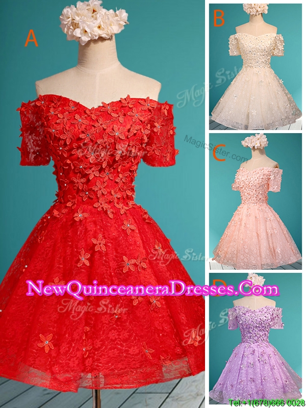 , Elegant Off the Shoulder Short Sleeves Dama Dress with Appliques and Beading