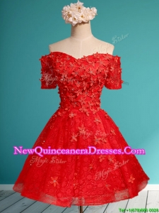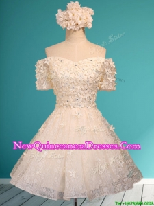 Elegant Off the Shoulder Short Sleeves Dama Dress with Appliques and Beading