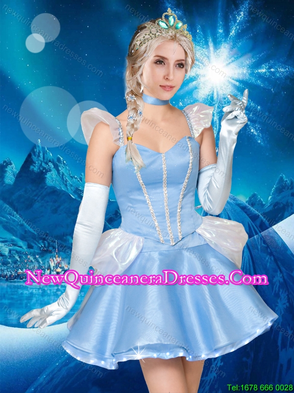 Elegant Short Straps Light Blue Dama Dresses with Sequins for 2016
