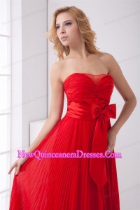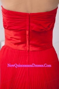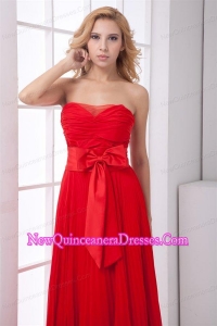 Elegant Strapless Red Empire Pleat Chiffon Dama Dress for Quinceanera with Bowknot