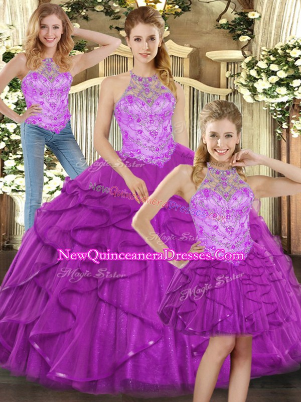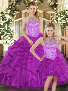 Elegant Tulle Sleeveless 15 Quinceanera Dress and Beading and Ruffles
