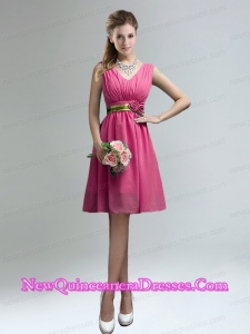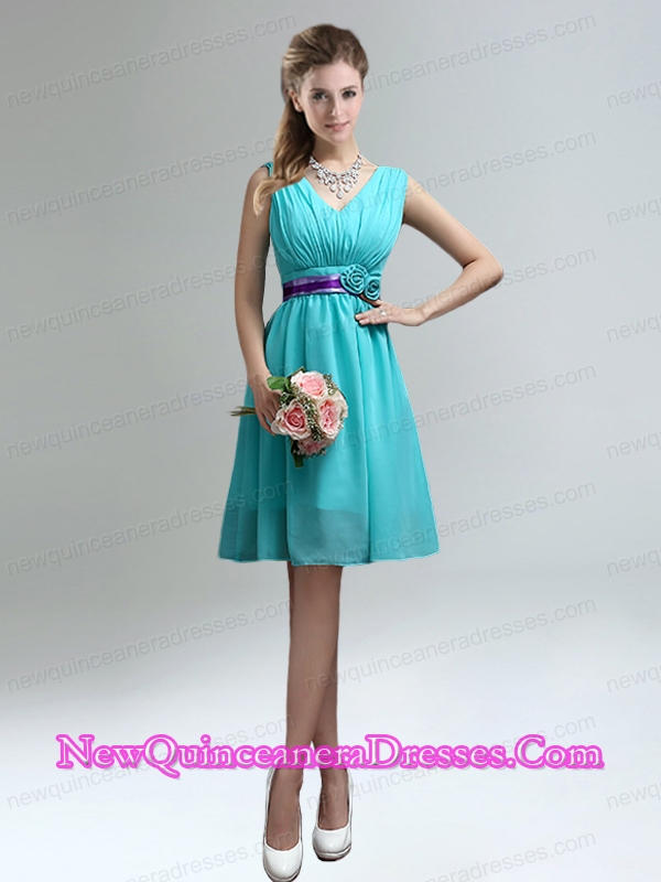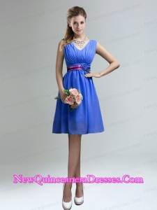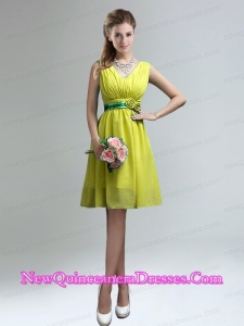 Elegant V Neck Ruched Dama Dresses with Belt for Sale