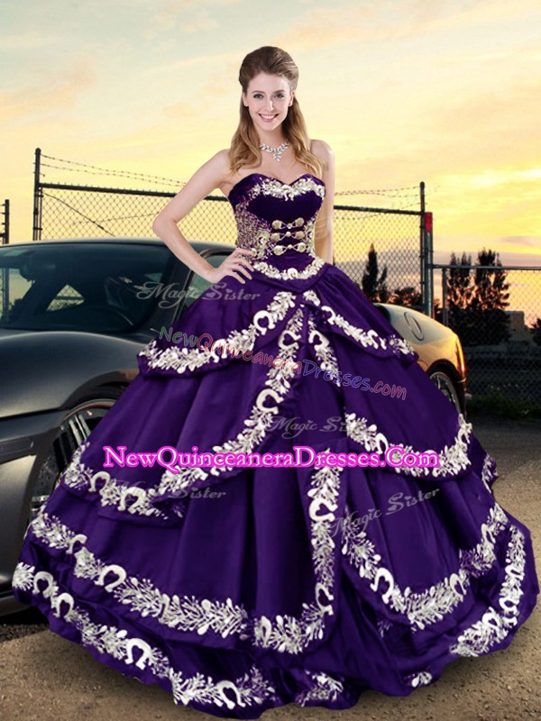 Embroidery and Ruffled Layers Quince Ball Gowns Purple Lace Up Sleeveless