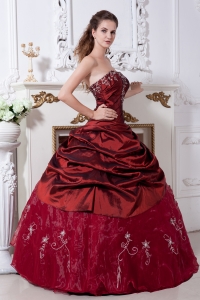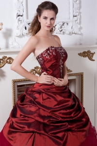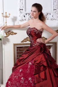 Wine Red Sweet 16 Dress Embroidery A-line Strapless Taffeta and Organza Floor-length
