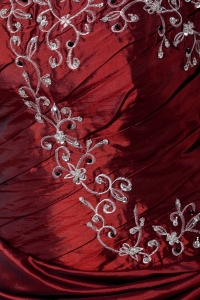 Embellish your dream evening with the lovely details of this gorgeous gown! This exclusive ball gown is keeping ahead of the fashion trend forever! It features a strapless bodice with a lovely pleated texture and beautifully beaded trim along the top and beautifully beaded appliques around the midsection. The top layer of the A-line skirt is ruched, which creates a fantastic texture throughout the design. The underlayers of the skirt are just puffy enough and gorgeous as well, featuring beaded appliques throughout as well.