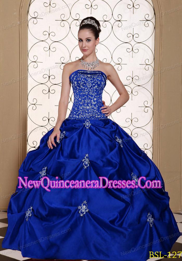 Embroidery Taffeta Strapless Discount Sweet 16 Dresses with Pick-ups