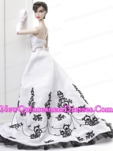 Embroidery Wedding Dress To Fit the Barbie Doll With Brush Train