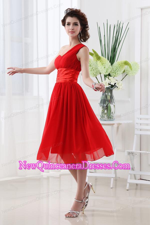 Empire One Shoulder Belt Knee-length Red Dama Dresses