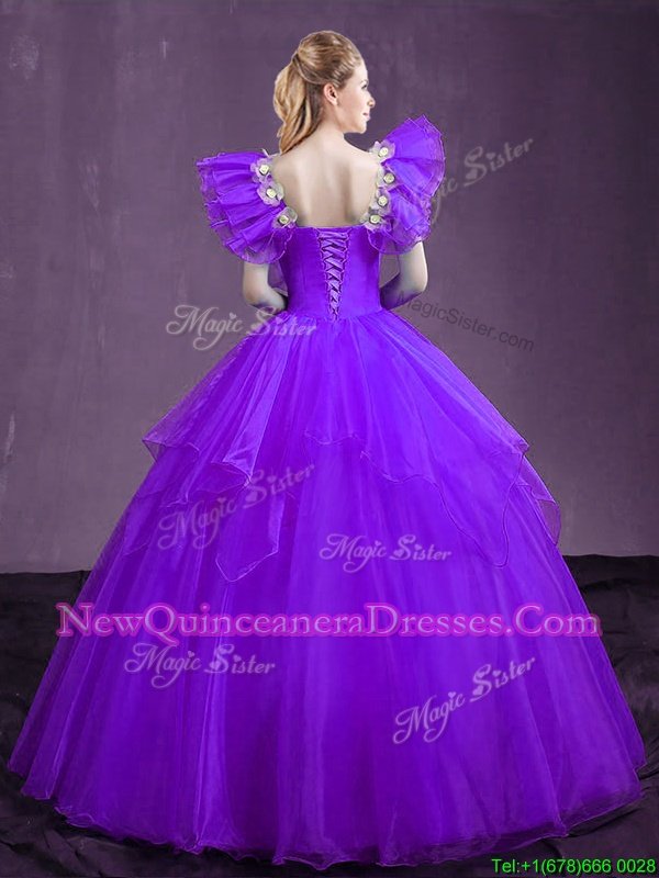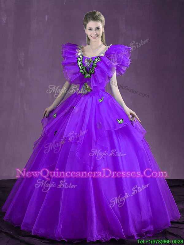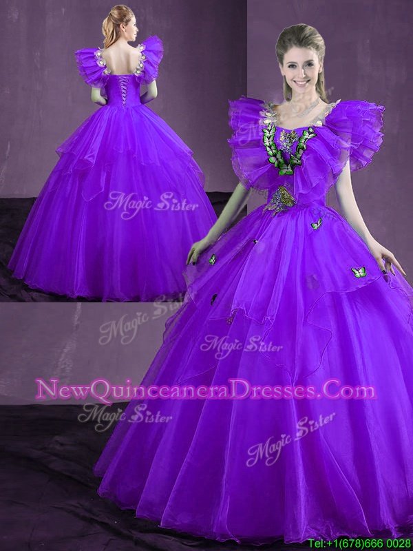 Excellent Purple Organza Lace Up 15 Quinceanera Dress Sleeveless Floor Length Appliques and Ruffles
