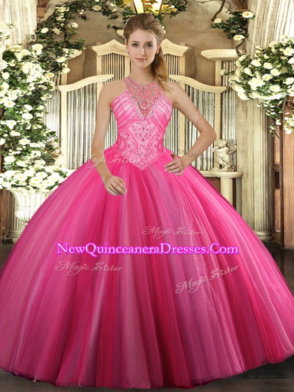 Excellent Sleeveless Beading Lace Up Quinceanera Dress