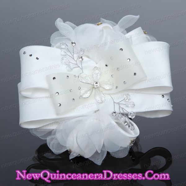 Exculsive White Lilac Satin Hair Flower with Beading