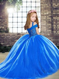 Exquisite Beading Kids Formal Wear Baby Blue Lace Up Sleeveless Brush Train
