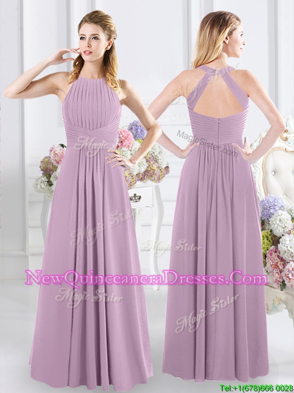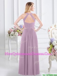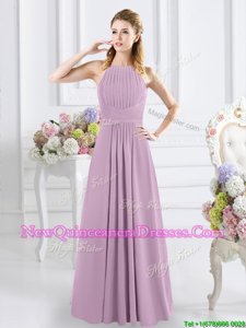 Exquisite Lavender Halter Top Neckline Ruching Vestidos de Damas Sleeveless Zipper
