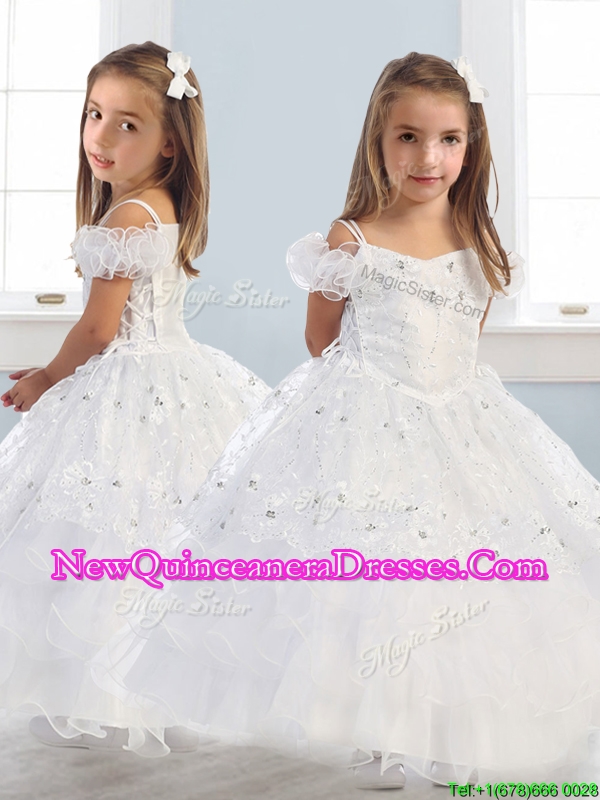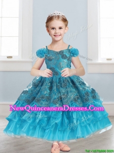 Exquisite Spaghetti Straps Cap Sleeves Little Girl Pageant Dress with Lace and Ruffled Layers