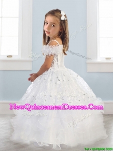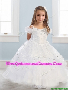 Beautiful Scoop Little Girl Pageant Dress with Hand Made Flowers and Sequins