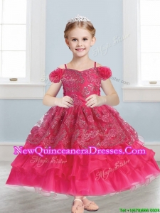 Popular Spaghetti Straps Lace and Ruffled Layers Little Girl Pageant Dress in Hot Pink