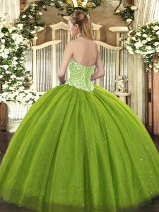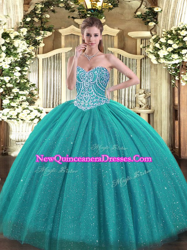 Exquisite Turquoise Lace Up Sweetheart Beading Sweet 16 Dresses Tulle Sleeveless