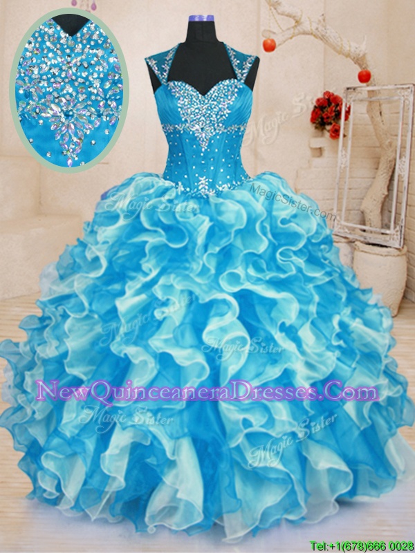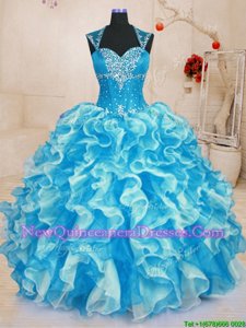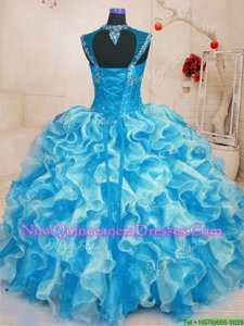 Extravagant Beading and Ruffles Quince Ball Gowns Aqua Blue Lace Up Sleeveless Floor Length
