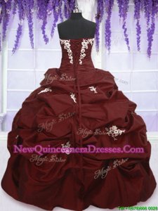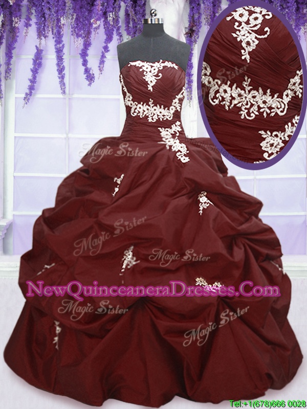 Cute Taffeta Strapless Sleeveless Lace Up Appliques and Pick Ups 15th Birthday Dress inWine Red