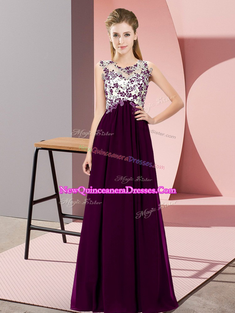 Fancy Dark Purple Zipper Court Dresses for Sweet 16 Beading and Appliques Sleeveless Floor Length