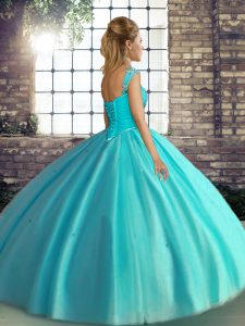 Fancy Sleeveless Tulle Floor Length Lace Up Sweet 16 Dress in with Beading