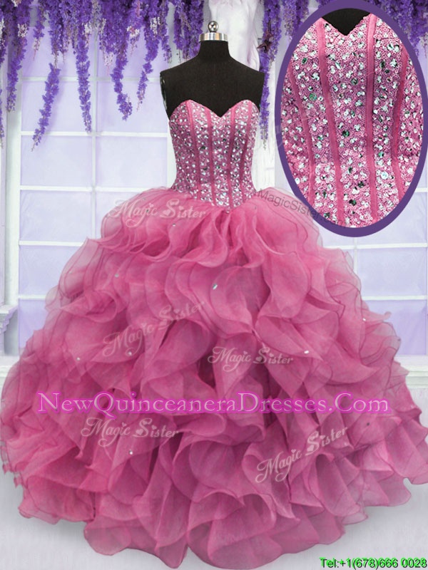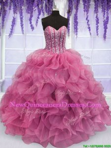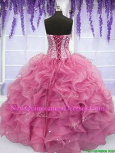Fantastic Floor Length Ball Gowns Sleeveless Rose Pink Vestidos de Quinceanera Lace Up