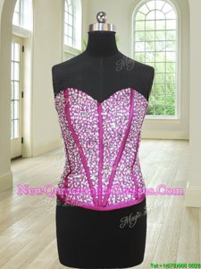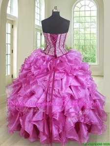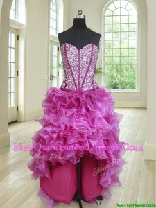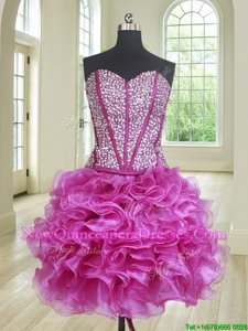 Fantastic Four Piece Fuchsia Sweetheart Lace Up Beading and Ruffles 15th Birthday Dress Sleeveless
