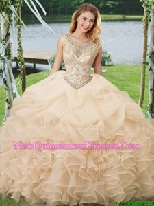 Modest Scoop Champagne Sleeveless Beading and Ruffles Floor Length Sweet 16 Dresses