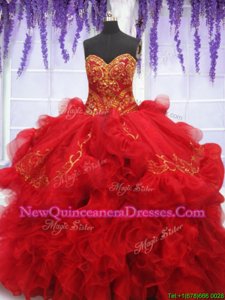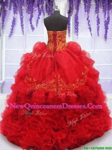Fantastic With Train Ball Gowns Sleeveless Red Vestidos de Quinceanera Brush Train Lace Up